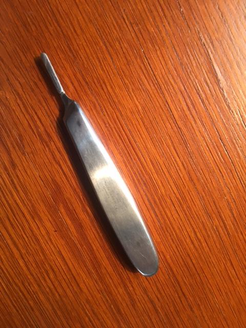 Рукоятка скальпеля No:3L 21 cm, изогнут по длине. Под узкое лезвие.