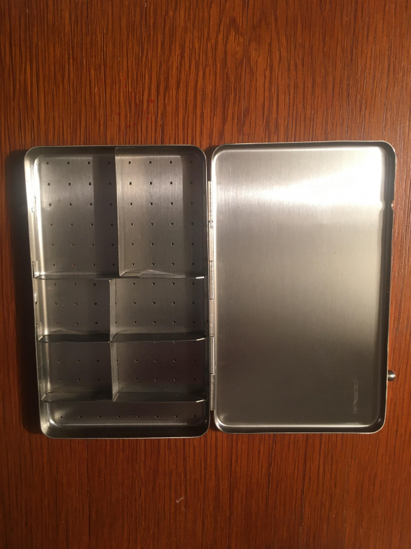 Cткрилизац контейнер для игл 150х95х13мм. Крышка не перфорирован, дно- перфорированное.