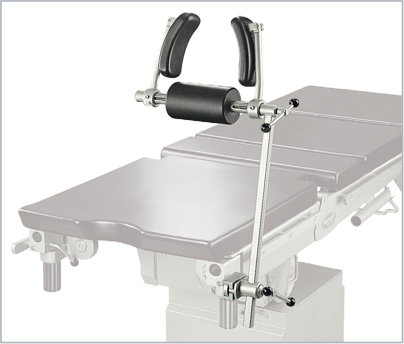 Конструкция приставки и мультипозиционного крепления предусматривает возможность ее регулировки по высоте и углу продольного наклона относительно ложа операционного стола.