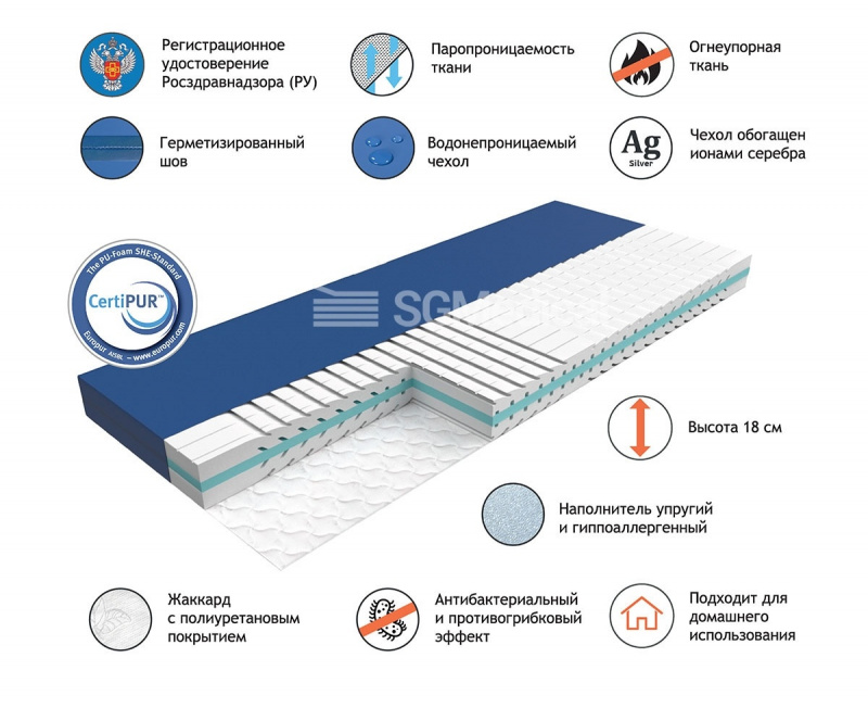 - Обработан по запатентованной технологии ионами серебра (Ag) и обладает антибактериальным и антигрибковым эффектом