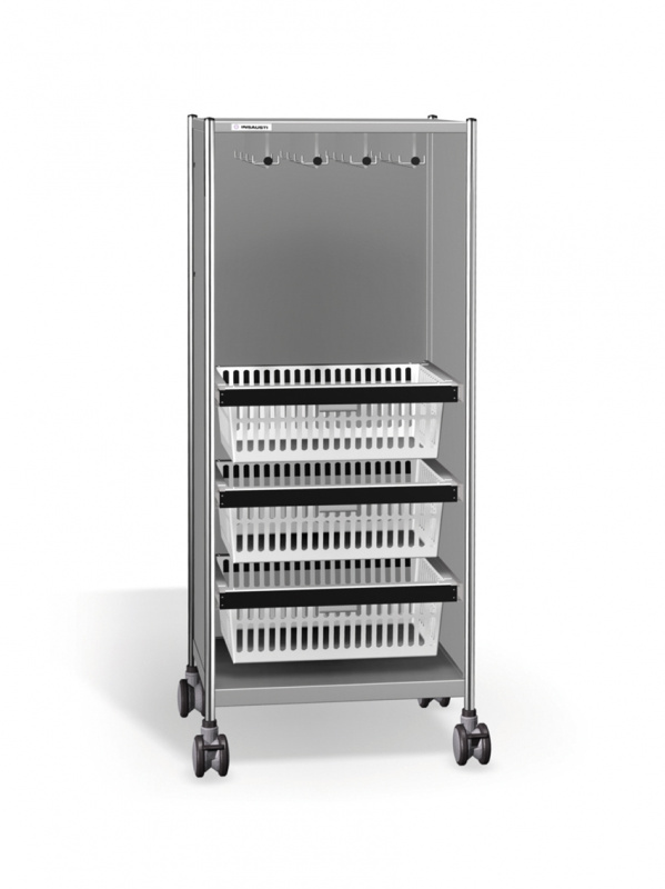 Три выдвижные корзины стандарта ISO (600 x 400 мм) на роликовых направляющих с «мягким» доводчиком выдвигаются на полную глубину и могут быть использованы для размещения в них материалов и принадлежностей. Разрешенная максимальная нагрузка каждой корзины 20кг. В данной модели медицинской тележки используются корзины одного размера: